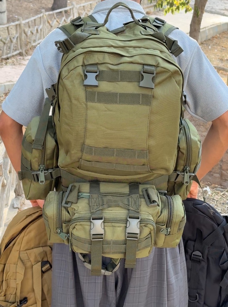 4 تکه جدا شدنی شامل کوله اصلی، دو کیف جانبی و یک کیف کمری